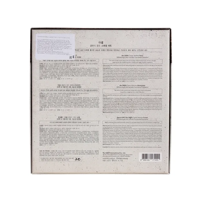 Уходовый мужской набор Classic Homme Special Set от The Saem представляет собой комплексное решение для ежедневного ухода за кожей. Этот набор специально разработан для укрепления и омоложения мужской кожи, помогает справиться с её огрубением и обеспечивает защиту от агрессивных факторов окружающей среды. Включает в себя три основных продукта: крем, тонер и лосьон-флюид, которые интенсивно питают кожу, устраняют чувство стянутости и восполняют недостаток витаминов и микроэлементов.