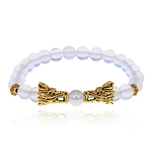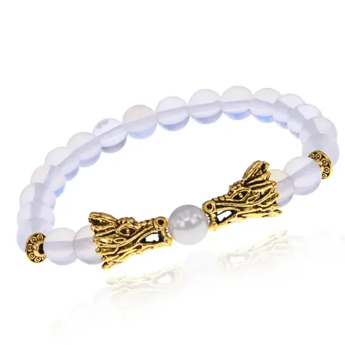 Браслет-амулет Драконы с синт. камнем Лунный камень 8мм BSHE-08-11G