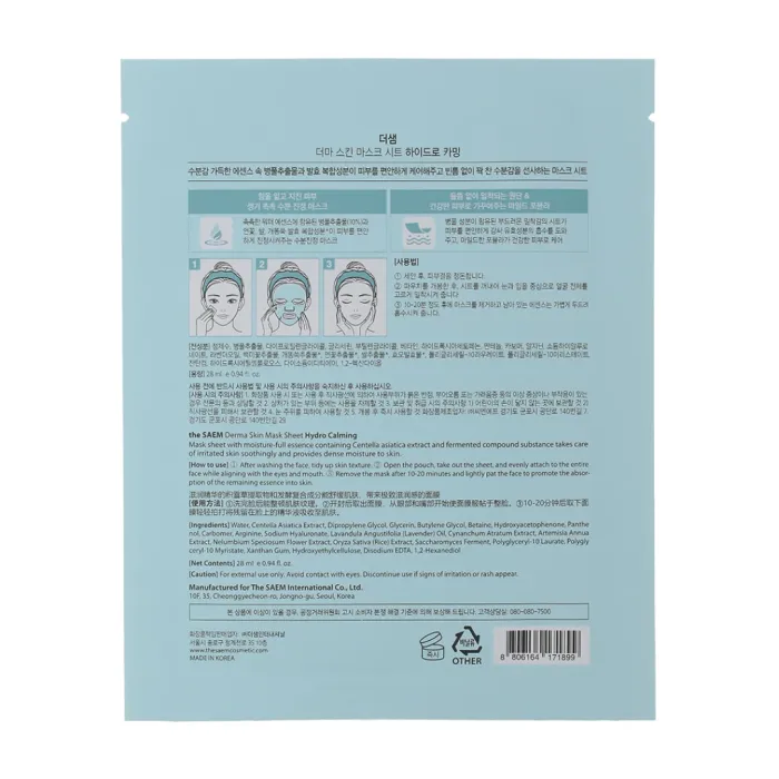 Тканевая маска для заживления повреждений Derma Skin Mask Sheet Hydro Calming 28 мл The Saem