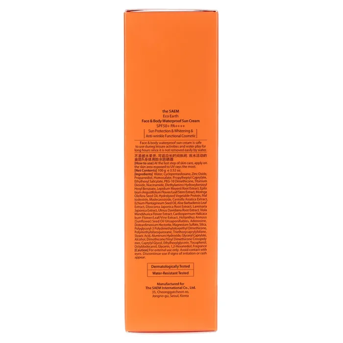 Крем солнцезащитный для лица и тела водостойкий Eco Earth Face&Body Waterproof Sun Cream SPF 50+ PA++++ 100 мл The Saem