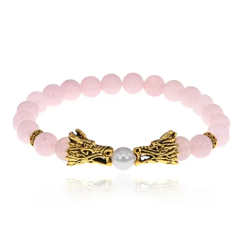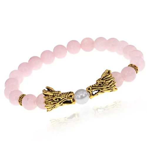 Браслет-амулет Драконы с нат. камнем Розовый кварц 8мм BSHE-08-15G
