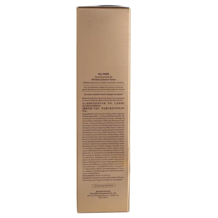 Антивозрастной тонер для лица Snail Essential EX Wrinkle Solution Toner от The Saem предназначен для интенсивного увлажнения и разглаживания морщин. Этот премиум-продукт содержит концентрированный комплекс Golden Snail, который в сочетании с аденозином и коллагеном способствует поддержанию здоровья кожи и стимулирует выработку энергии в клетках. Тонер помогает улучшить текстуру кожи, делая её более гладкой и упругой.