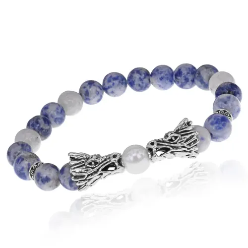 Браслет-амулет Драконы с нат. камнем Содалит 8мм BSHE-08-18S