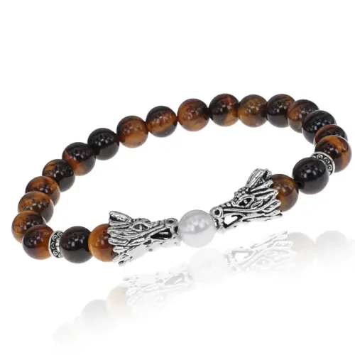 Браслет-амулет Драконы с нат. камнем Тигровый глаз 8мм BSHE-08-19S