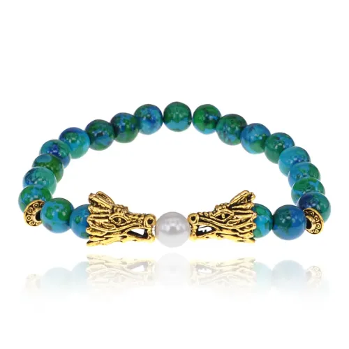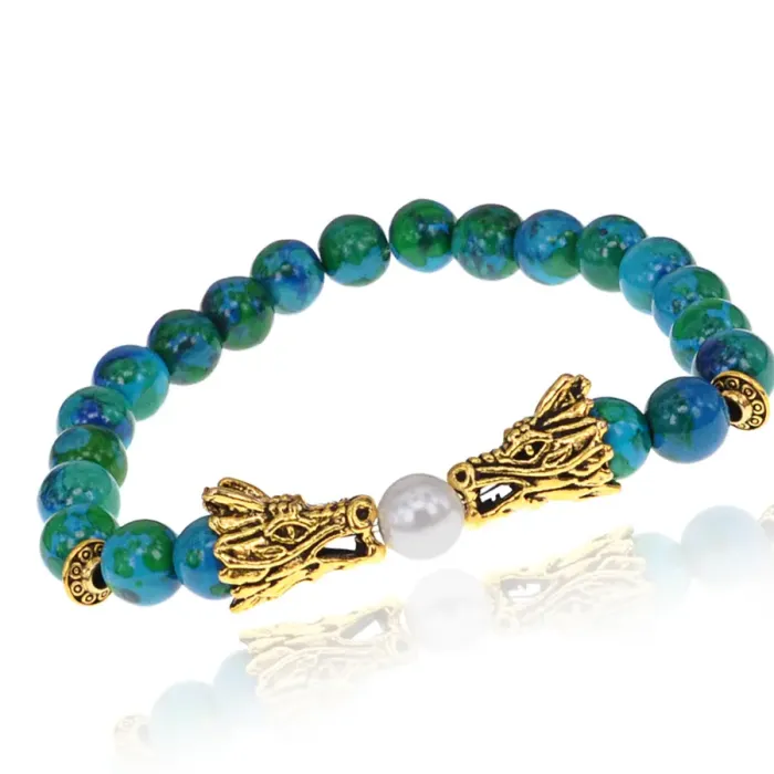 Браслет-амулет Драконы с синт. камнем Хризоколла 8мм BSHE-08-21G