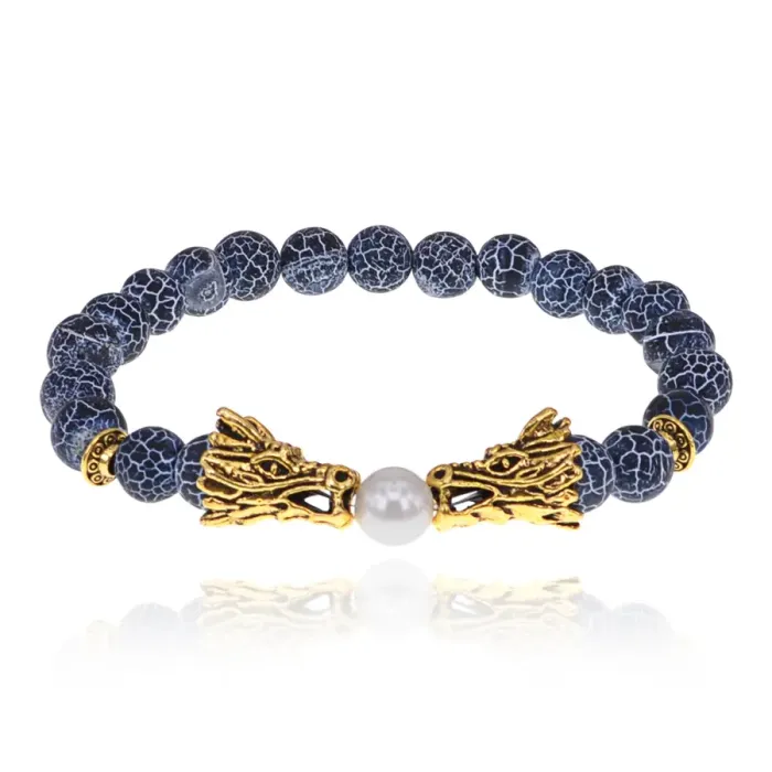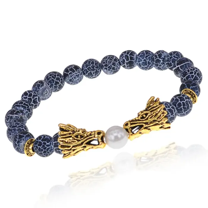 Браслет-амулет Драконы с нат.камнем синий Африканский агат 8мм BSHE-08-27G