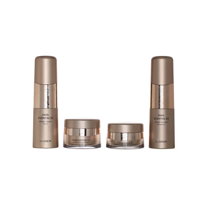 Набор уходовый антивозрастной для лица Snail Essential EX Wrinkle Solution Skin Care Set от The Saem предназначен для интенсивного ухода за кожей и борьбы с признаками старения. В состав набора входят тонер, эмульсия, крем и крем для области вокруг глаз. Средства содержат концентрированный комплекс Golden Snail, аденозин и коллаген, которые увлажняют кожу, выравнивают её рельеф и способствуют подтяжке. Комплексный подход к уходу делает кожу более гладкой и эластичной.