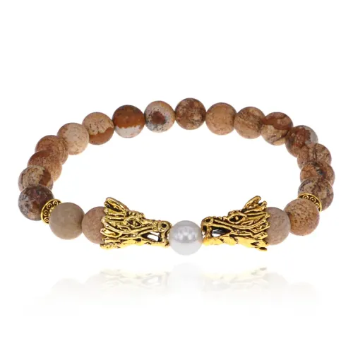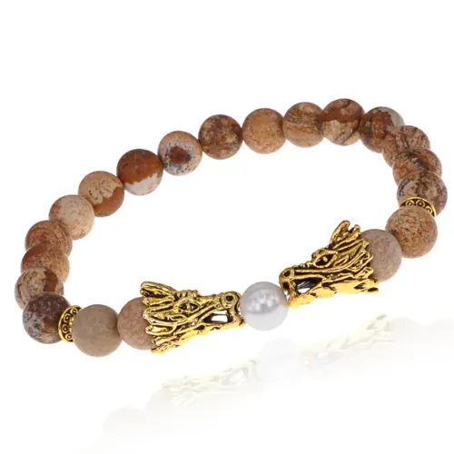Браслет-амулет Драконы с нат. камнем Песочная яшма 8мм BSHE-08-30G