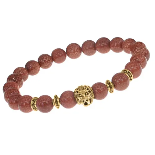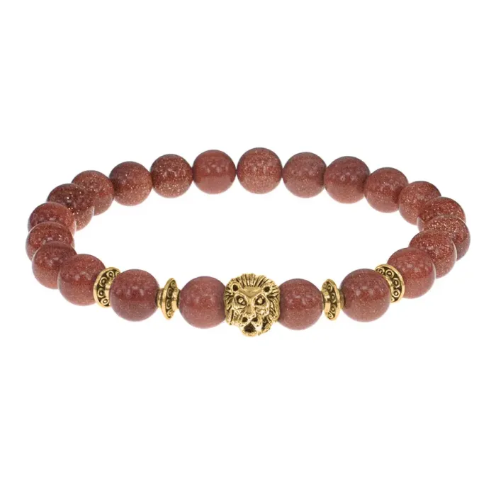 Браслет-амулет Лев с синт. камнем Коричневый авантюрин 8мм BSHE-09-01G