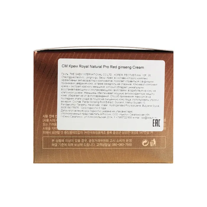 Антивозрастной крем для лица с женьшенем Royal Natural Pro Red Ginseng Cream 50 мл The Saem