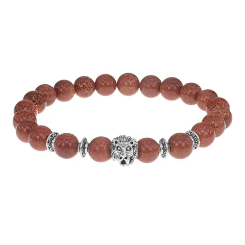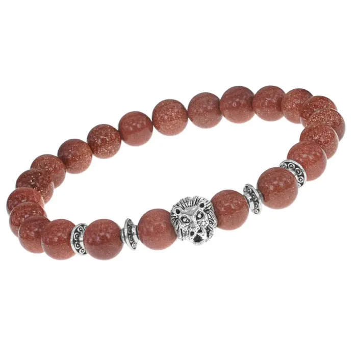 Браслет-амулет Лев с синт. камнем Коричневый авантюрин 8мм BSHE-09-01S