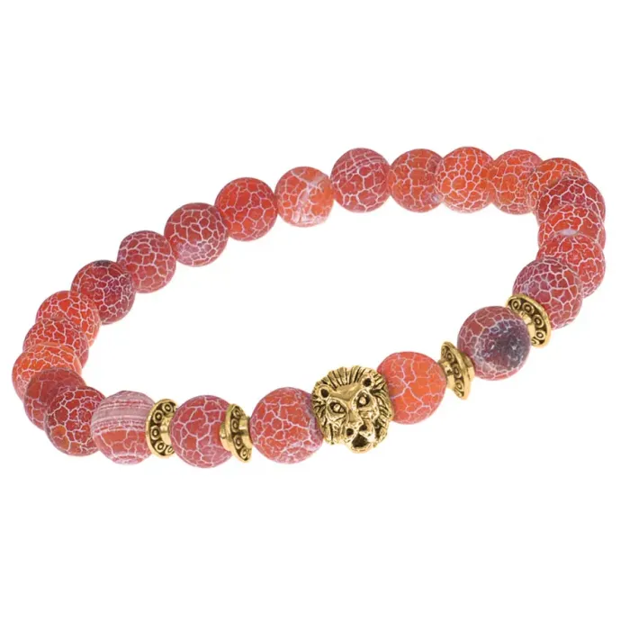 Браслет-амулет Лев с нат. камнем Африканский агат 8мм BSHE-09-04G