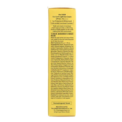 Солнцезащитный крем Eco Earth Light Sun Cream от The Saem обеспечивает надежную защиту кожи от вредного воздействия солнечных лучей. С высоким фактором защиты SPF50+ PA++++, он эффективно предотвращает ожоги и преждевременное старение кожи, вызванное воздействием UVA- и UVB-лучей. Легкая текстура крема быстро впитывается, не оставляя липкости или жирности на коже. В состав входит фитокомплекс с экстрактами растений, которые ухаживают за кожей и обеспечивают дополнительное питание.