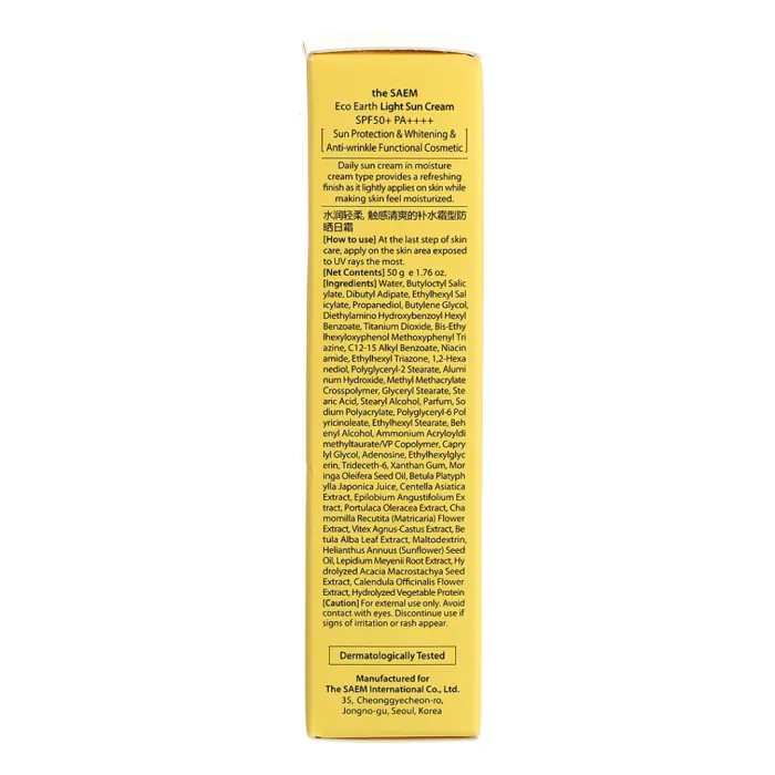 Легкий солнцезащитный крем Eco Earth Light Sun Cream SPF50+ PA++++ 50 гр The Saem