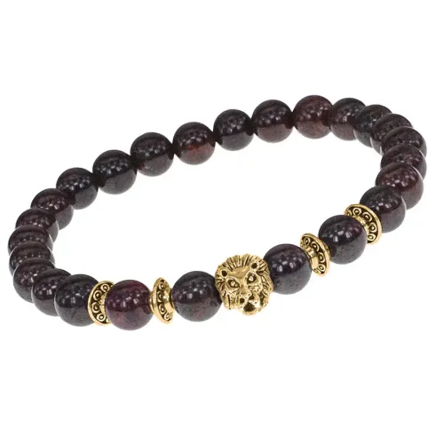 Браслет-амулет Лев с нат. камнем Гранат 7,5 мм BSHE-09-06G