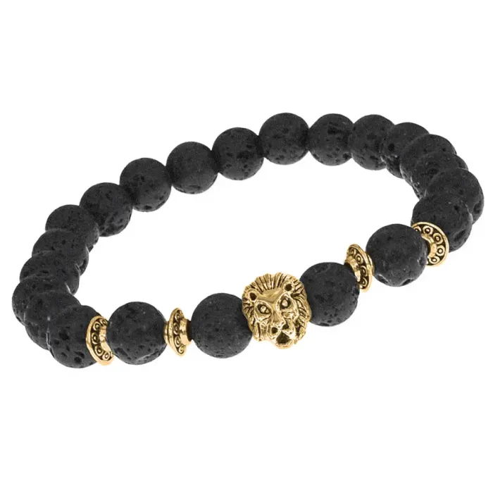 Браслет-амулет Лев с нат.камнем Лава 8мм BSHE-09-09G