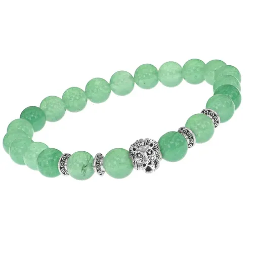 Стрейч-браслет с амулетом в виде льва и бусиной из натурального нефрита.