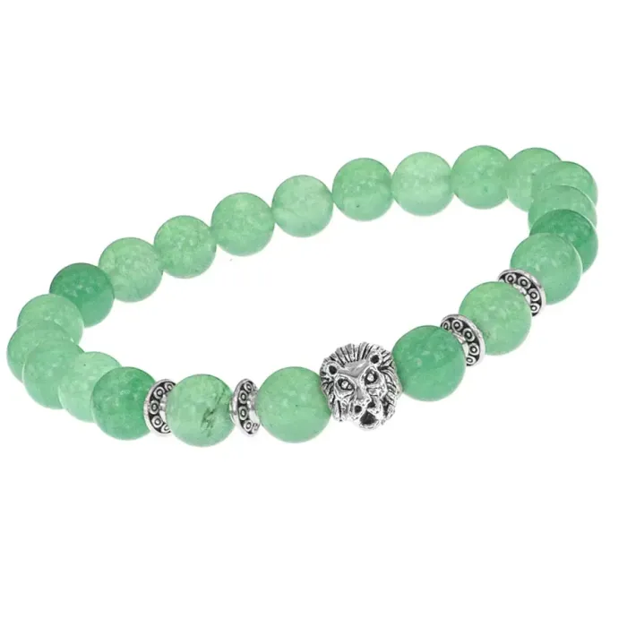 Браслет-амулет Лев с нат.камнем Нефрит 8мм BSHE-09-13S