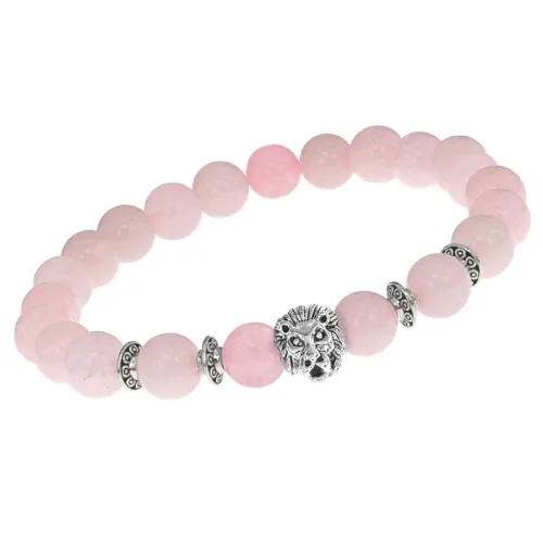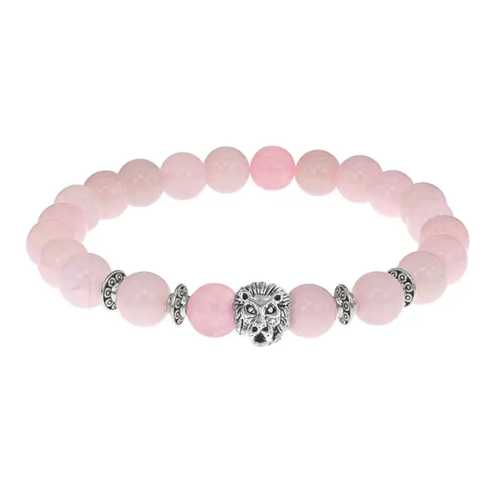 Браслет-амулет Лев с нат. камнем Розовый кварц 8мм BSHE-09-15S