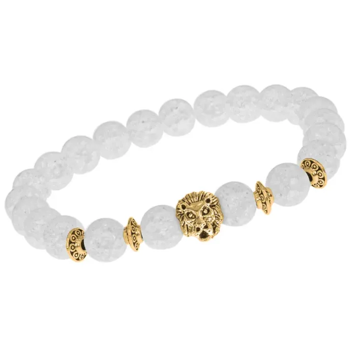 Браслет-амулет Лев с синт. камнем Сахарный кварц 8мм BSHE-09-16G