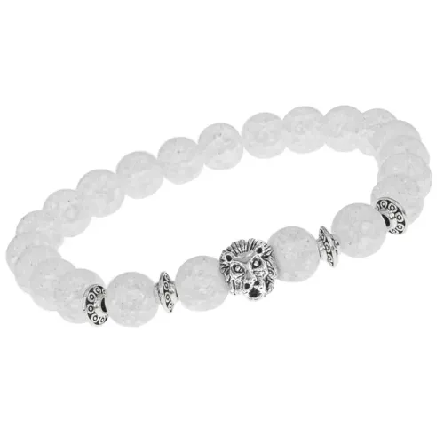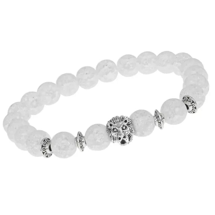Браслет-амулет Лев с синтетическим камнем Сахарный кварц 8мм BSHE-09-16S