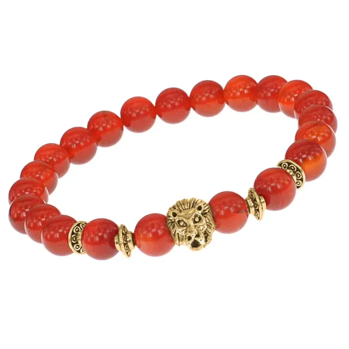 Браслет-амулет Лев с нат. камнем Сердолик 8мм BSHE-09-17G