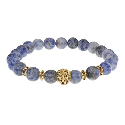 Браслет-амулет Лев с нат. камнем Содалит 8 мм BSHE-09-18G