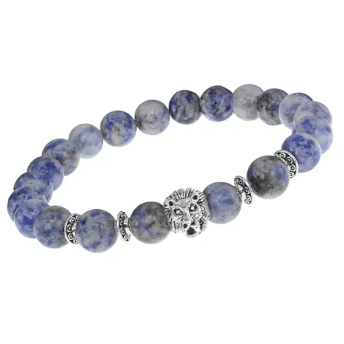 Браслет-амулет Лев с нат.камнем Содалит 8мм BSHE-09-18S