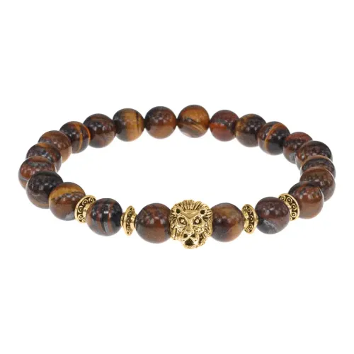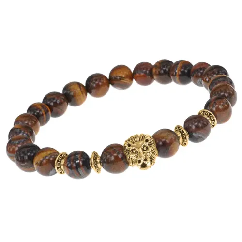Браслет-амулет Лев с нат.камнем Тигровый глаз 8мм BSHE-09-19G