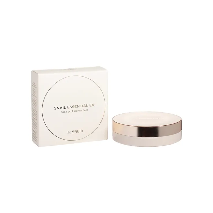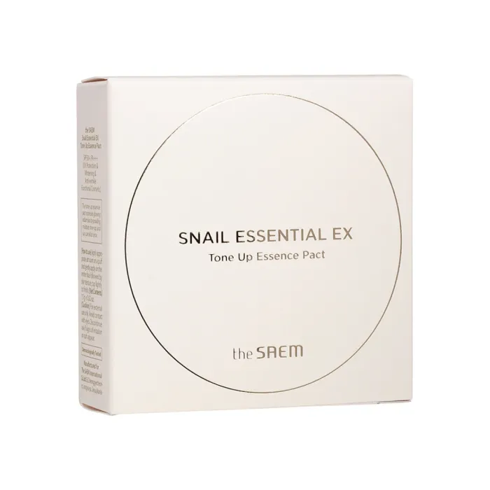 Пудра Snail Essential EX Tone Up Essence Pact от The Saem — это многофункциональное средство, которое помогает добиться ровного и чистого тона кожи, придавая ей сияние и осветление. Она увлажняет кожу и защищает её от вредного воздействия УФ-излучения. Продукт сочетает два оттенка (белый и нежно-розовый), что позволяет осветлить тусклую кожу и создать ровный тон. В составе присутствуют улиточный муцин и золото, известные своими полезными свойствами для кожи.