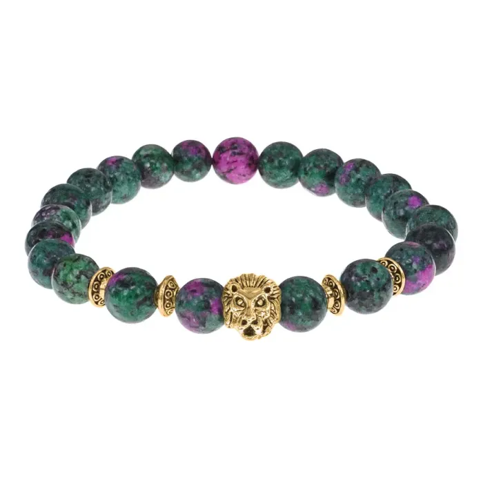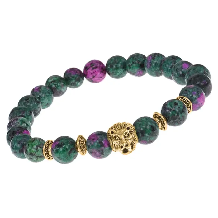 Браслет-амулет Лев с синт. камнем Цоизит 8 мм BSHE-09-22G