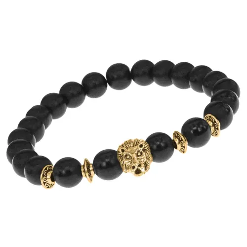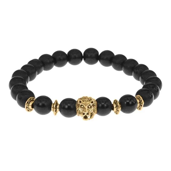 Браслет-амулет Лев с синт. камнем Шунгит 8мм BSHE-09-24G