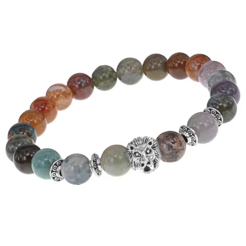 Браслет-амулет Лев с нат. камнем Яшма 8мм BSHE-09-25S