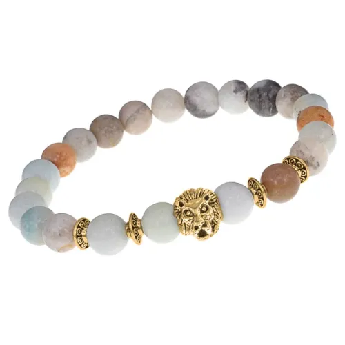 Браслет-амулет Лев с нат. камнем Амазонит 8мм BSHE-09-26G