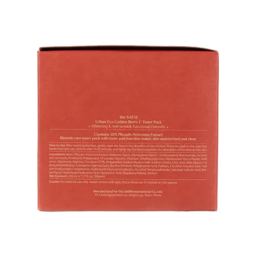 Пады пропитанные тонером от морщин и пигментации Urban Eco Golden Berry C Toner Pack The Saem 230 мл
