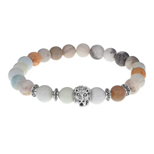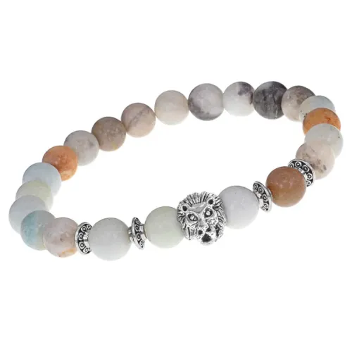 Стрейч-браслет с амулетом в виде льва и бусинами из натурального амазонита.
