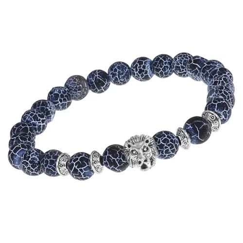 Браслет-амулет Лев с нат. камнем синий Африканский агат 8мм BSHE-09-27S