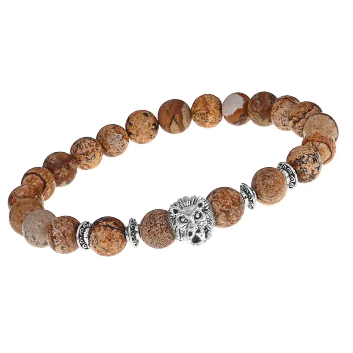 Браслет-амулет Лев с нат. камнем Песочная яшма 8мм BSHE-09-30S