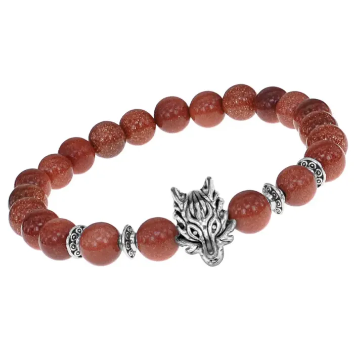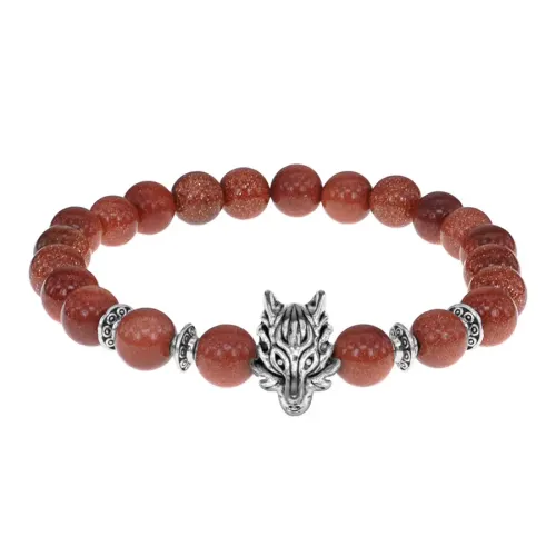 Браслет-амулет Волк с синт. камнем Коричневый авантюрин 8мм BSHE-10-01S