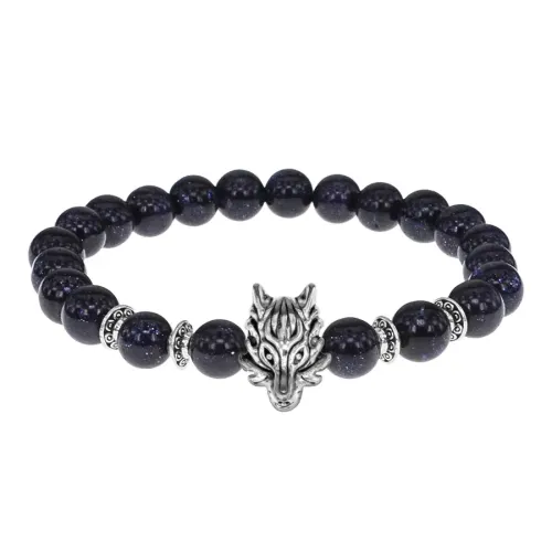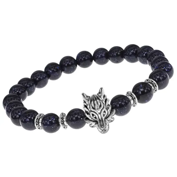 Браслет-амулет Волк с синт. камнем Синий авантюрин 8мм BSHE-10-02S