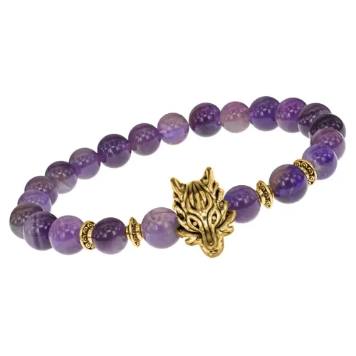 Браслет-амулет Волк с нат.камнем Аметист 8мм BSHE-10-03G
