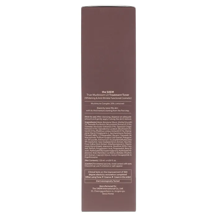 Тонер для лица True Mushroom LX Treatment Toner от The Saem — это средство для ухода за кожей, содержащее уникальный грибной комплекс. В его состав входят экстракты пяти видов грибов и ферментированные ингредиенты, которые насыщают кожу влагой и повышают её эластичность. Тонер быстро впитывается, не оставляя липкости, делая кожу гладкой и сияющей. Подходит для первого этапа ухода за кожей.