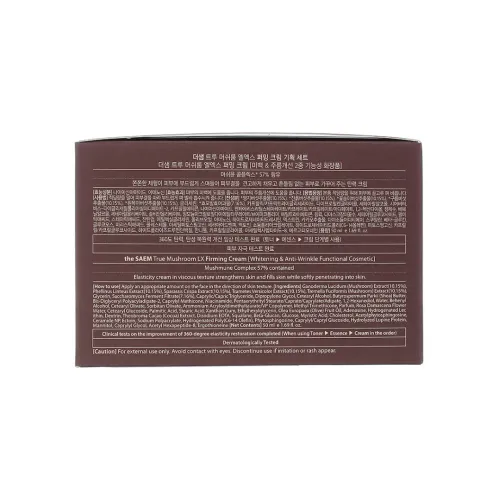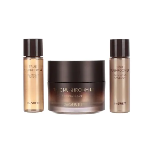 Набор средств для ухода за кожей лица True Mushroom LX Firming Cream Special Set от The Saem предназначен для сохранения молодости и красоты кожи. В состав набора входит уникальный грибной комплекс, который сочетает в себе 5 видов грибов и ферментированные ингредиенты, экстрагированные в течение 100 часов. Набор включает крем для лица (50 мл), который нежно проникает в текстуру кожи, укрепляет её и делает гладкой; тонер (миниатюра, 31 мл) и эмульсию (миниатюра, 31 мл).