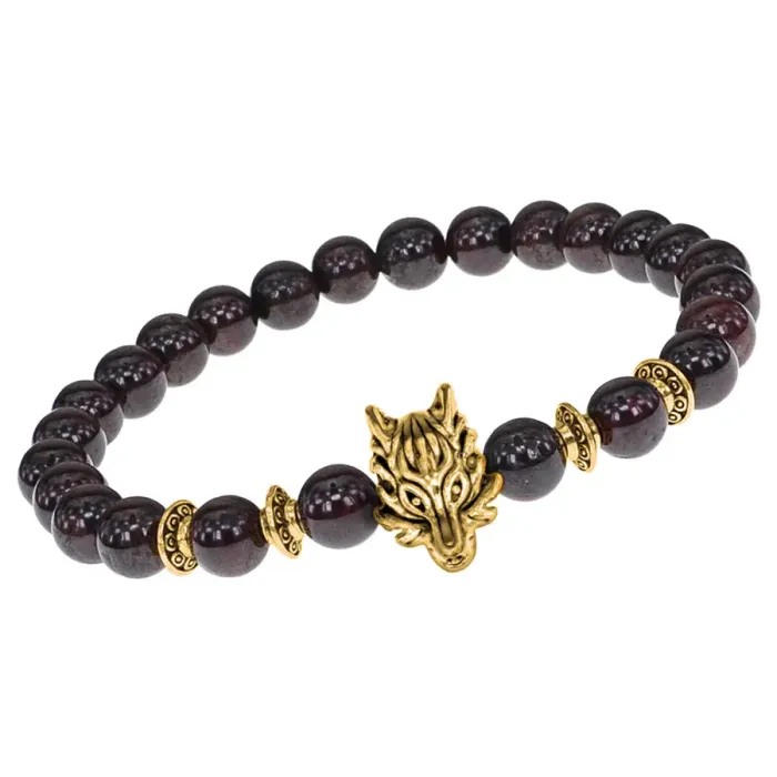 Браслет-амулет Волк с нат. камнем Гранат 7,5 мм BSHE-10-06G