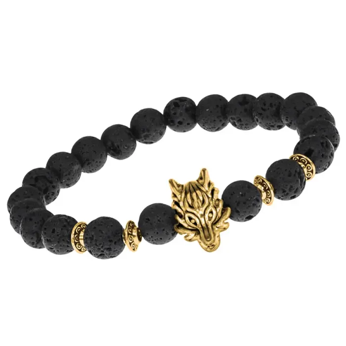 Браслет-амулет Волк с нат. камнем Лава 8мм BSHE-10-09G