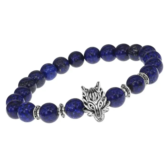 Браслет-амулет Волк с нат. камнем Лазурит 8мм BSHE-10-10S