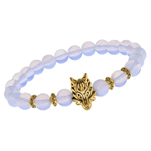 Браслет-амулет Волк с синт. камнем Лунный камень 8мм BSHE-10-11G