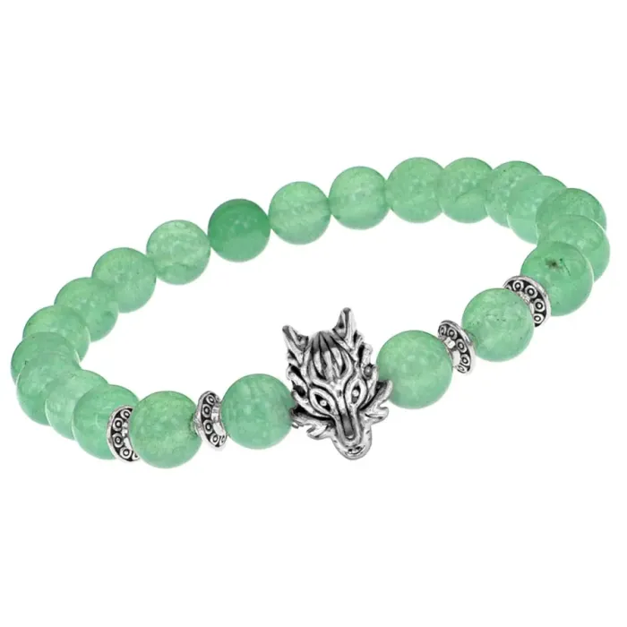 Браслет-амулет Волк с нат. камнем Нефрит 8мм BSHE-10-13S