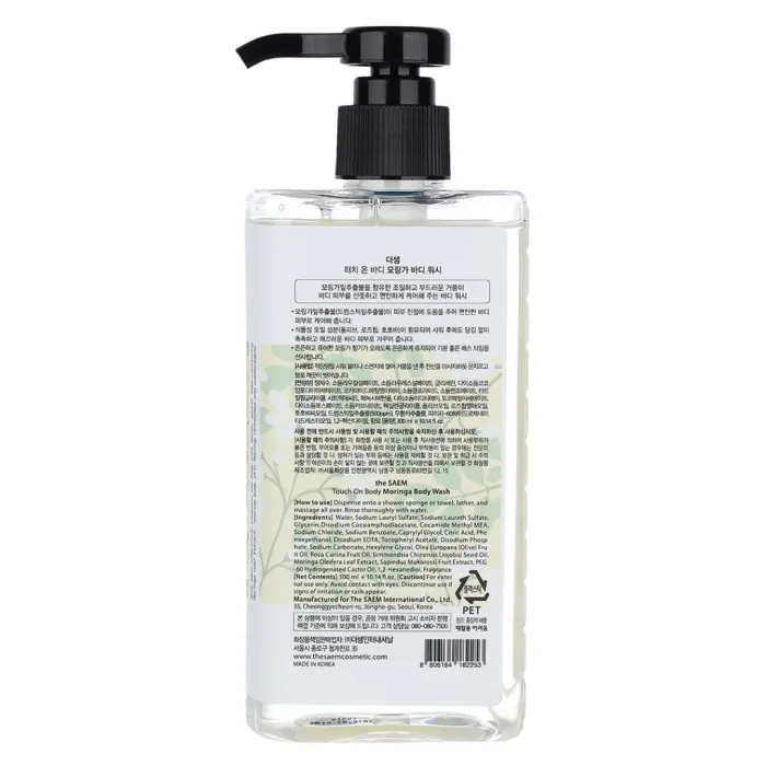 Гель для душа Touch On Body Moringa Body Wash от The Saem — это эффективное средство для ежедневного ухода за кожей. Объем 300 мл обеспечивает длительное использование продукта. Гель содержит экстракт моринги, который известен своими увлажняющими и успокаивающими свойствами, что делает его идеальным выбором для чувствительной и раздраженной кожи. В состав также входят оливковое масло, масло шиповника и масло жожоба, которые помогают поддерживать кожу гладкой и увлажненной после каждого использования.