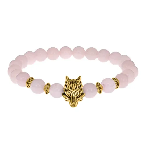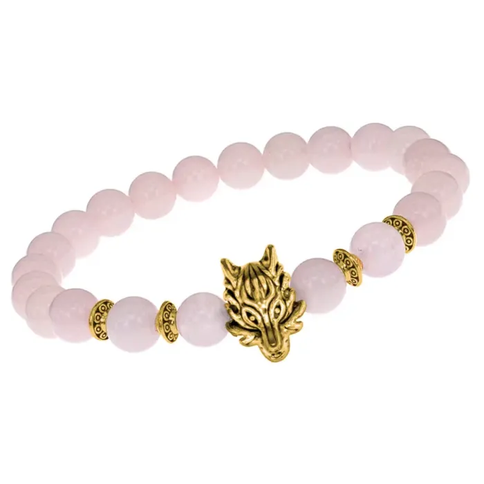 Браслет-амулет Волк с нат. камнем Розовый кварц 8мм BSHE-10-15G